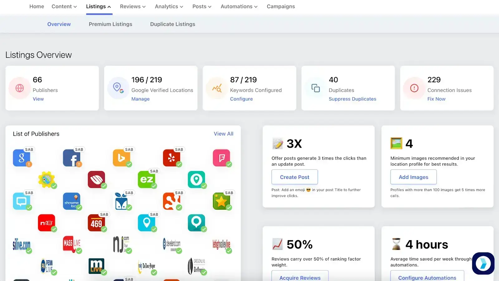 Managing listings for multi-location businesses can feel like trying to wrangle a dozen cats. Updating brand information, verifying new listings, handling reviews, and uploading new promotional photos and videos across all listings is a lot to manage.