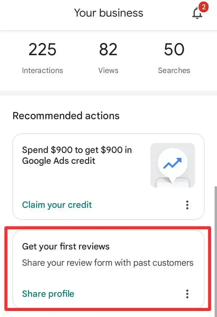 Follow Steps 1 and 2 above. Then, scroll down to the “Your Business” screen and tap on “Share Profile” in the “Get Your First Reviews” section.