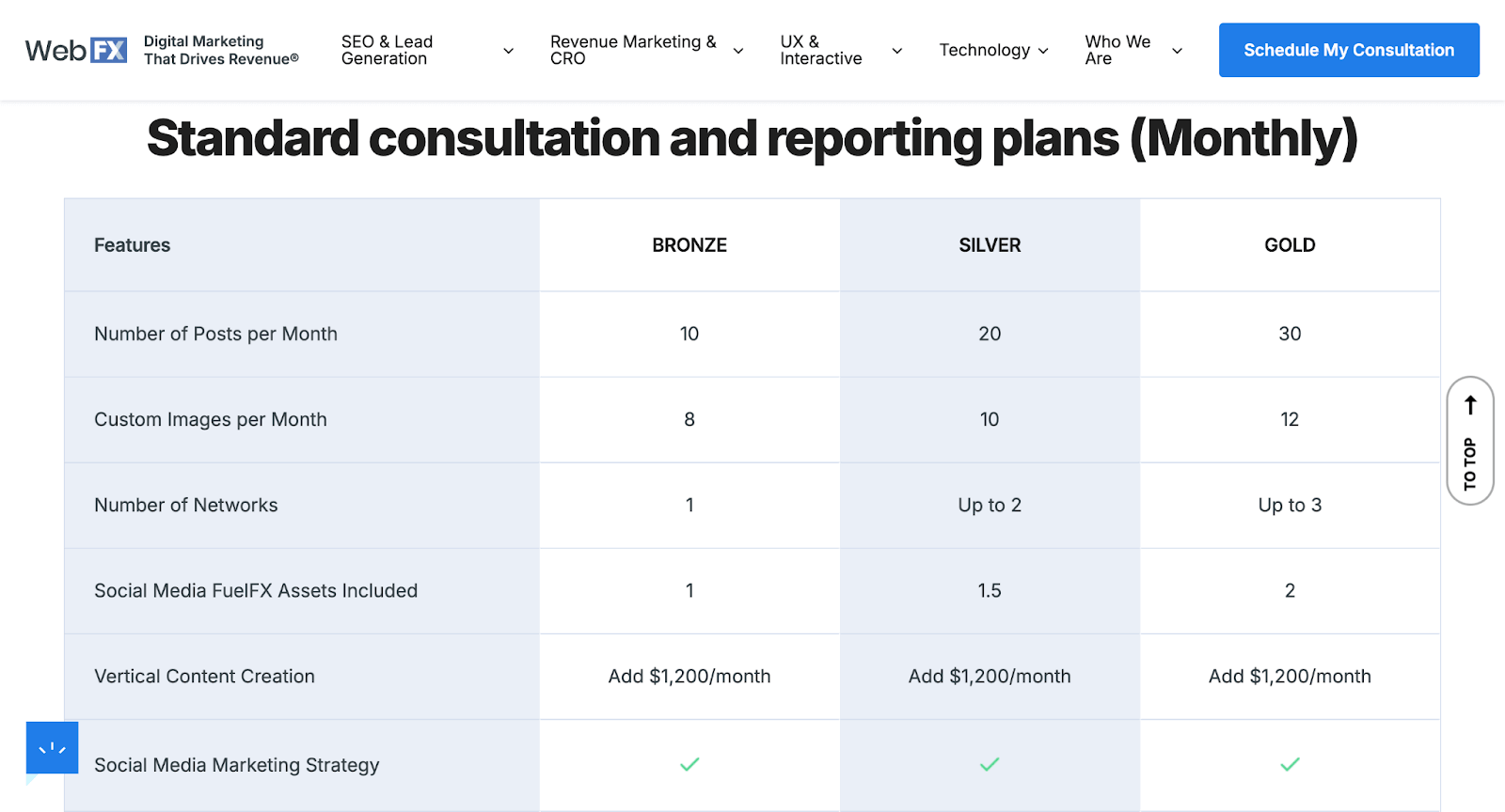 For example, large agencies like WebFX have custom quotes for enterprise clients but also offer standard packages clients can pick from their website. BlueTickSocial also uses this hybrid model, balancing clear package options with the flexibility of tailored quotes.