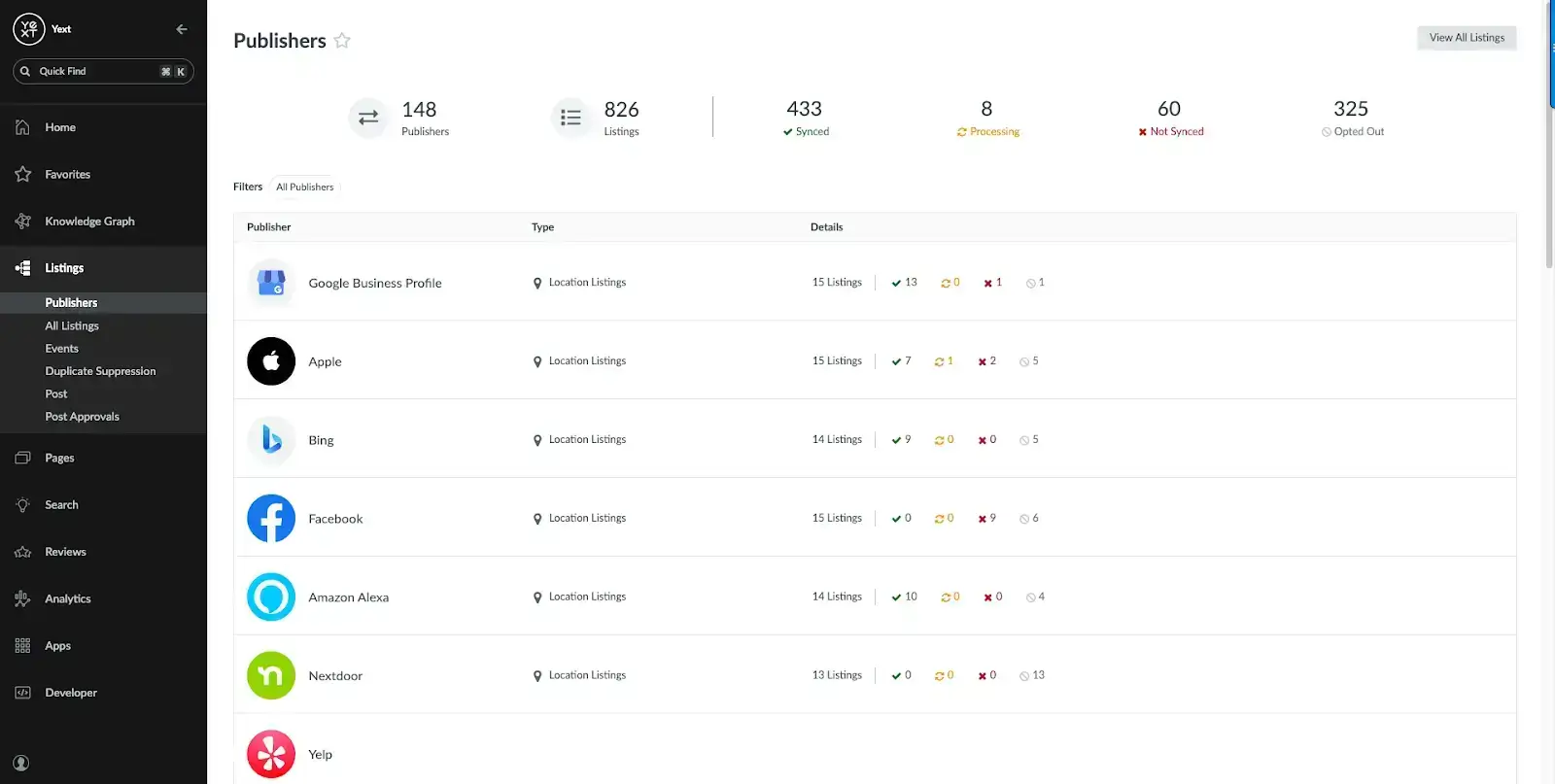 Yext is a prominent player in the listing management industry, known for its extensive capabilities and robust local citation software. The platform offers accurate listing syncs with minimal bugs, leveraging its vast network and advanced features. However, some users have reported challenges with customer support accessibility following the company's rapid growth.